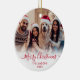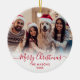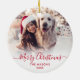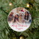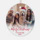Modern Cute Minimalist Red Script 2 Photo God jul Script Helgdag Ornament Card. Den här snygga, enkla, minimalistiska, visuella, två fotokortsmallar Julhälsningar Namn, År och en hälsning-text "God jul" som är skriven i en handskriven text som snabbt byts ut mot rött calligrafskript i svan på vit övertoning. Söt hälsningskort för din familj och dina vänner under julens Julhelg.