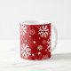 En roligt Helgdag kaffe mugg med en röd snöflingdesign. Du kan redigera ordalydelsen ovan eller trycka på knappen "anpassa" eller "klicka för att anpassa ytterligare" för att göra ytterligare justeringar. Kontrollera resten av samlingen för matchande artiklar för helgdagarna.