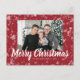 Modern Red Snowflake Photo jul-vykort. Gör dina semesterhälsningar tydliga med detta röda och vita snöflingkort, med ett foto på framsidan och ett till på baksidan. Den fet röda bakgrunden med skarp vit snöflingor skapar ett klassiskt festivt utseende som säkert kommer att glädja sig. Det här vykortet är perfekt för att skicka ett uppriktigt helgdag-meddelande samtidigt som det förblir personligt och minnesvärt. Med plats för två foton är det det idealiska sättet att få tillfällen av glädje och att ha kontakt med nära och kära under julhelgen. Lägg till ett litet magiskt helgdag i varje brevlåda med det här vackert designade vykortet.