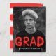 Urban, trendig foto tillkännagivande för studenten som innehåller student fotot med "Grad" i en röd sprutfärgtypografi i stil. Anpassa fronten genom att lägga till student namn, namn, studenten och skolår. Det moderna studenten-meddelandet återgår till att ha en gult-sprejfärg.