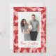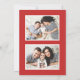 Skicka semesterhälsningar till vänner och familj med dessa moderna julfotokort. Utformningen har ett foto från din favoritfamilj i lodrät som är inramat i vitt med en bakgrund av frostigt glas med vattenfärgad nedfläckad i skuggor av rosa, rött och burgundi. "God jul" visas nedan i ett handskript med mörken röd pensel. Anpassa baksidan av kortet med två ytterligare foton som är inramade i vitt mot en solid röd bakgrund. De festliga och unika julkorten kommer säkert att imponera på alla på er lista över julkort i julhelg.
