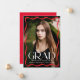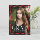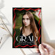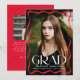Fira högskolan eller högskolan student med snyggtens tillkännagivande studenten, som innehåller ett fullt-blekt lodrät som är framtaget av ett modernt rött vågigt gräns. "Grad" i ord utmärker sig med fet vit stil, medan student, namn, skola och klassår, tillför en personlig beröring. Baksidan visar ett foto med vågrät med utrymme för ett anpassningsbar-meddelande, skapar det perfekten till att denna speciella milstolpe med familj och vänner.