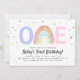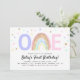 Modern regnbåge och stjärnor "ONE" 1:a födelsedage Inbjudningar