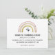 Supersöt, modern regnbågstematisk inbjudan till ditt barns födelsedagsfest.