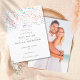 Färgglatt regnbågskonfetti sitter ovanför dina speciella detaljer för att spara datumet i stilfull, elegant modern typografi. Baksidan visar ditt eget speciella foto eller lämna tom eller lägg till en bakgrundsfärg som passar. Designad av Thisisnotme©