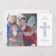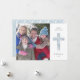 Denna moderna julkort har ett vackert akvarellkors och ett stort foto. Anpassa texten ovanför korset (visas som "God Jul") och lägg till era namn och år nedanför korset. Välj sedan ert favoritfoto att lägga till på vänster sida om korsdesignen. Den vita bakgrunden på framsidan och den ljusblå bakgrunden på baksidan kan ändras om så önskas.