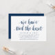 Modern Ren Rustik, Marinblå typsnitt Script-tema inbjudningskort (med korttitel: vi har bundit knuten). Det är perfekt för din bröllopsfest / efterbröllopsfirande. Lägg till dina detaljer i matchande svart typsnitt / bokstäver.