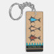Den här dubbla-sidiga nyckel-fob visar 2 variationer av IconDoIt:s coola Modern Retro-design, som var och en har 3 tecknader fisk, formaterad för att återspegla inverkan av atomisk och flygteknisk design, som simmar över förslaget om blått vinkart över svart rand på ett naturligt körsbärsträd yta + 2 anpassningsbar text fält för mottagarens namn eller kapning. Inspinerad av serietecknare och grafiska konstnärer efter WWII.