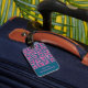 Modern retro blomsterblocktryck bagagelapp med namn på framsidan. Lägg till dina egna kontaktuppgifter på baksidan. Matchande artiklar tillgängliga. Originalkonst från konstnärens egna illustrationer. Använd knappen 'skicka meddelande' nedan för hjälp med ytterligare anpassning och specialförfrågningar. © Zoe Chapman Design