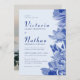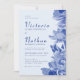 Modern Retro Blue Chinoiserie Blommigt Photo Bröll Inbjudningar