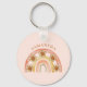 Modern nyckelkedja för radiobho-regnbågsutformning med namn. Lätt att byta namn. Roligt, modern vattenfärgsregnbåge.