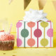 Lägg till lite glädje i julklapparna med denna mönstrade papper med ett enkelt geometriskt mönster i en färg-palett på 1970-talet med röd, kalkgrön, orange, rosa och grönt mot en vit bakgrund.