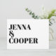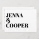 Den här moderna inbjudan till efterbröllopet innehåller parets namn på framsidan med fet stil. Närmare uppgifter om bröllop finns på baksidan av inbjudan i ett matchande modernt sans serif-teckensnitt. Det här är perfektens bröllopsinbjudan till ett modernt, enkelt bröllop.