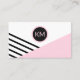 Håll ditt företag med en contemporary och öppna det geometriska mönster med en reflexkänsla som använder det här affärskortet mode framåt med vinklat svart rand och rosa färg med ett framträdande matchande runt logotyp ram som omger ditt monogram. Anpassa textmallen med din monogram- och affärsinformation på kortets baksida. Det är en skönhetskonsult som är exemplet på yrkestitel, men det mångsidiga affärskortet fungerar bra även för boutiques, mode, bloggare, formgivare och många andra yrken.