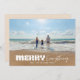 Modern minimalistisk "Glad Allt" julkort med en bild. Framför font är vit. Bakre font är svart på en neutral bakgrund.