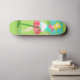 Den moderna Retro Housefru Skateboard kommer att få dig att bryta ut dina pärlor för att utföra de mest banala uppgifterna. Designen har en grön kalkbakgrund med ett blått fönster. Men pièce de résistance är med säkerhet den klassiska TV-hemmafrun som bär en rosa-täckklänning med en turkos och vita apron- och turkoskor. Hennes blonda hår är perfekt fräckt och hennes hand håller ett vakuummunstycke. Naturligtvis! Vad skulle hon annars göra om hon inte skapar sitt hem sött hem lite sötare?