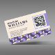Elevate your professional branding with this sophisticated business card featuring a chic mid-century modern geometric pattern. The elegant blend of lavender, plum, and cream offers a creative yet polished aesthetic, perfect for skincare specialists, interior designers, estheticians, and modern entrepreneurs. This design includes a functional QR code layout to seamlessly bridge the gap between your physical card and online presence. Every element is designed for versatility; the geometric pattern colors are 100% customizable, allowing you to adapt the palette to match your specific brand identity perfectly. Simply use the Zazzle design tool to create a look that is uniquely yours.