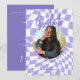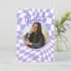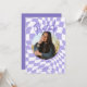 Modern Retro Lila & White Check Photo Studenten Inbjudningar