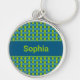 Modern Retro Link Pattern in Blue and Green Rund Silverfärgad Nyckelring
