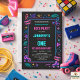Modern Retro Neon 80’s 1st Birthday Party Presentetikett