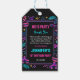 Modern retro neon 80s 1st birthday party gift tags with bright colorful design. Perfect for decorating presents and party favors at a neon themed first birthday celebration. 🎉🎁
