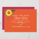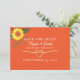 Modern - retro, boho, roligt, färgstark orange för blommigt och rosa magenta bröllop spara datum med romantiskt guld-rep, solrosor och trendig-skript.