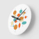Denna turkos, orange, grädde och svarta retrogeometriska cirklar och linjer halvsekelklocka kommer inte bara att lägga till en popo från färg i rummet, utan kommer också att vara en originalkonst från biet.