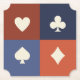 A stylish coaster featuring my original design of classic playing card suits in a warm retro color-block layout. Clean, minimal, and timeless, these coasters add a subtle game-inspired touch to any table setting. Perfect for game nights, events, and as small favors.