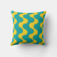 Modern Retro Turkos och Gul Vågig Abstrakt Kudde