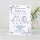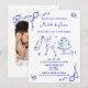 Modern Retro Whimsical Blue Hand plockade Bow Phot Inbjudningar