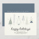 Modern minimalist familjes julkort med fantasifulla träd, stjärnor och hjärtillustrationer samt charmig typografi i kombination med en festlig, modern färgpalett. Nedan finns utrymme för ditt anpassade meddelande samt ytterligare utrymme på baksidan för ett längre personligt meddelande. Detta är den dämpade dammiga gröna och blå med elfenbensversionen.