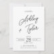 Simple retro minimal design wedding invitation all in one doulble sided with guest information details. Unique elegant handwritten names script. Suitable for spring summer fall or winter modern chic weddings.
