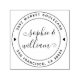 Skapa ditt eget runda bröllop returadress gummi frimärke och gör all korrespondens enkel. Klicka bara på "Anpassa den här mallen" och placera namn i första och andra fält, ditt husnummer och gatuadress på den tredje och din stad, stat och postnummer på den fjärde. Konstruktionen av gummi frimärke är enkel men modern och har två kretsar i mitten. Kombinera typsnitt för kalligrafi av elegant med sans-serif-typografi av tidslinje. Och du kan välja mellan nio olika bläck färg!