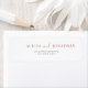 Elegantens minimalistiska typografi manövrerar henne och hans returetiketter i namn bröllop i enkla dammiga sommartid i ro vår färg.