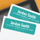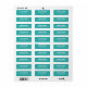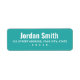 Returetiketter med ditt namn i ett fet vitt sans serif-teckensnitt och adress nedan på en tealbakgrund.