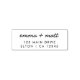 Snyggt par returadress frimärke i ett modernt, minimalistiskt stil med en elegant naturskripttypografi i klassisk svartvitt, med ett informellt handskriftsteckensnitt i stil. Texten kan lätt vara personlig för ett toppen unikt frimärke för dina bröllopsinbjudningar eller vardaglig använda!