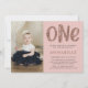 Modern, enkel och elegant flickas första födelsedagsinbjudan. Utformning med faux ro guld glitter en, party och ett foto.