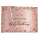 Girly Glam Modern Ro Guld Glitter Foil Monogram Namn 60 (eller ANY AGE) Birthday Anpassningsbar Personlig Gift Bag. Denna Vuxen av feminin SIXTY (SIXTIETH) Birhday party med Monogram Namn i ett handskrivet kalligrafiskt manus för snyggt och datum och ålder på rosa eller ro-faux borstat metallfolie med utseende med löst glam guld glitter ram. Idealisk för en feminin vuxen eller en gigantisk milstolpe på födelsedagen, är detta perfekt ett uttryck för en modern ro guld eller rosa gnistra glitter girig födelsedagsfest.