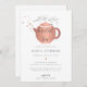 En modern, sofistikerad, elegant- och chic boho blommigt te-inbjudningsmall med en minimalistisk tekruka som är digitalt lagrad med ro guld (inte äkta folie), guld-hjärtan som sticker ut från sin spets och två grenar vita orkidéer, handdragna i svartvit grafitpenna. På baksidan sprider tepotten ro guld ro guld hjärtan. Perfekt för en möhippa i hemmet party som är elegant och modern. Anpassa varje textrad.