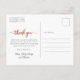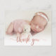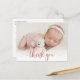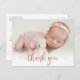 Elegant Modern Calligraphy Ro Guld Script Newborn Baby Photo Tack Postcard. Har en vacker "tack"-text i ett handskrivet calligraphy swash svan-teckensnitt i FAUX rosa ros guld-folie. På motsatt sida förtillverkat personligt meddelande i svartvitt. Enkel att anpassa med ditt baby-foto och din information.