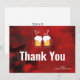 Ett platt tackkort med en modern abstrakt mönster. Röd och svart färg snurra, blanda och blanda ihop. Kreativ, konstnärligt och unikt med en mörk, mystisk fläkt. Ett par skumma ölglas klor ihop. Personlig på baksidan.