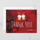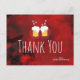 Ett tacksamt vykort för en fest med ett modernt abstrakt mönster. Röda och svarta färger virvlar, blandar och umgås tillsammans. Kreativa, konstnärliga och unika med en mörk, mystisk ton. Ett par skummande ölglas klirrar samman. Personligt meddelande på baksidan.