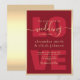 Denna djärva och moderna bröllopsinbjudan har en slående röd bakgrund med minimalistisk kalligrafi och stor LOVE-typografi i bakgrunden. Kombinerat med en snygg guldram och moderna typsnittsval är denna design perfekt för stilfulla efter-ceremoni-firanden eller romantiska kvällsmottagningar med en minimalistisk ton.