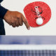 Modern pingpongpaddel med en giftig, röd glitter-bakgrund och ett handskript. Anpassa med ditt namn och monogram.