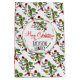 Modern rött och grönt bär på julklapp i helgdag. En mönster av grylleburkar täcker trendigets fram- och baksida. En vit ram innehåller ditt namn och texten: God jul i ett kursivt skript.