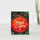 Designen består av en röd julgranskula på en mörk bakgrund. Lägg till ditt familjenamn, år och anpassat meddelande.
