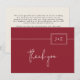 Modern Röd Minimalistisk Monogram Bröllop Tack Kort