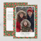Modern röd och grön blommig fyrkantig fotohögtidsk julkort