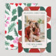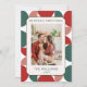 Modern röd och grön geometrisk blommig mönsterfoto julkort