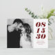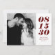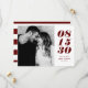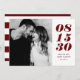 Modern röd och vit fet datumtypografi - Spara datum | Ett anpassade sparar det platta datumkortet med fet typografi och rand mönster. Den här snyggten sparar datumkortet som perfekt för alla bröllop-teman och alla årstider. Anpassa genom att lägga till information om foto och bröllop. Du kan anpassa kortet ytterligare genom att ändra mönster till ett annat foto eller en annan bild.